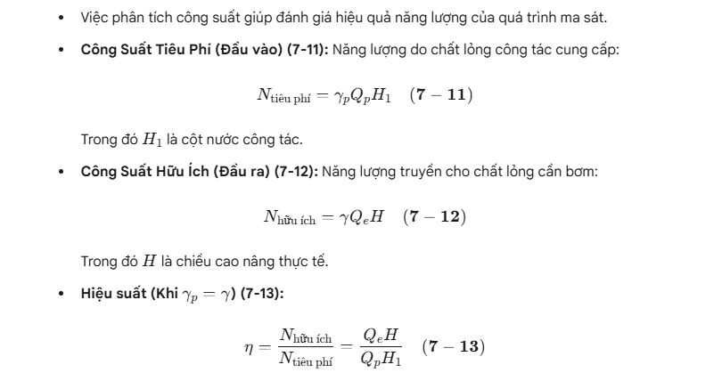 Công Suất Hữu Ích (Đầu ra) (7-12): Năng lượng truyền cho chất lỏng cần bơm: