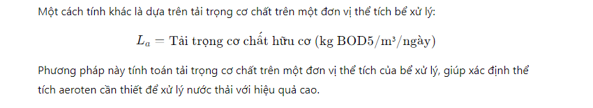 Phương pháp này tính toán tải trọng cơ chất trên một đơn vị thể tích của bể xử lý, giúp xác định thể tích aeroten cần thiết để xử lý nước thải với hiệu quả cao.